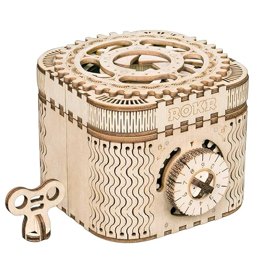 Rokr 3D Wooden Puzzle Mechanical Treasure Box : Robotime rokr diy 3d treasure box wooden puzzle game for kids assembly toy for kids and adults it is a very very interesting.